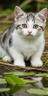 Ihr rundliches Gesicht hat eine rosa Nase und darüber sitzen mandelförmige Augen, die sich in ein goldenes Gelb entwickeln. Das einzige, was an der kleinen Kätzin an ihren Vater erinnert.