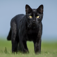Zwielichtpfote - schlanke, bemuskelte Kätzin mit schwarzem Fell, kaum sichtbarer Leopardenmusterung und grünen Augen