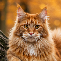 Ahornschatten - Großer Langhaarkater mit rot getigerten Fell, weißen Zehen-, Schwanzspitzen und Brustfleck sowie honigfarbene Augen