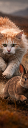 Das Tier fing an Haken zu schlagen und Goldfuchs folgte, die Bewegungen relativ präzise. Mit dem nächsten Haken den die Beute einschlug, hatte Goldfuchs gerechnet, schnitt den Weg ab, setzte zu einem Sprung an und traf mit den vorderen Pfoten auf den Hasen. Beide rollten über den Boden, der Kater versuchte einen guten Punkt zu finden um das Tier festzuhalten. Als er ihn fand, fixierte er seine Beute und biss dann schnell und feste in die Kehle.