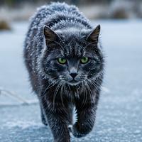 Nebelkrähe - großer, muskulöser Kater mit schwarzem Fell, gräulichen Akzenten und blassen, blattgrünen Augen