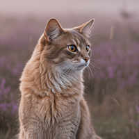 Sonnenruf - große, muskulöse Kätzin, mit langem hellorangenen Fell und Tigerung und bernsteinfarbenen Augen; Mentorin von Samtpfote
